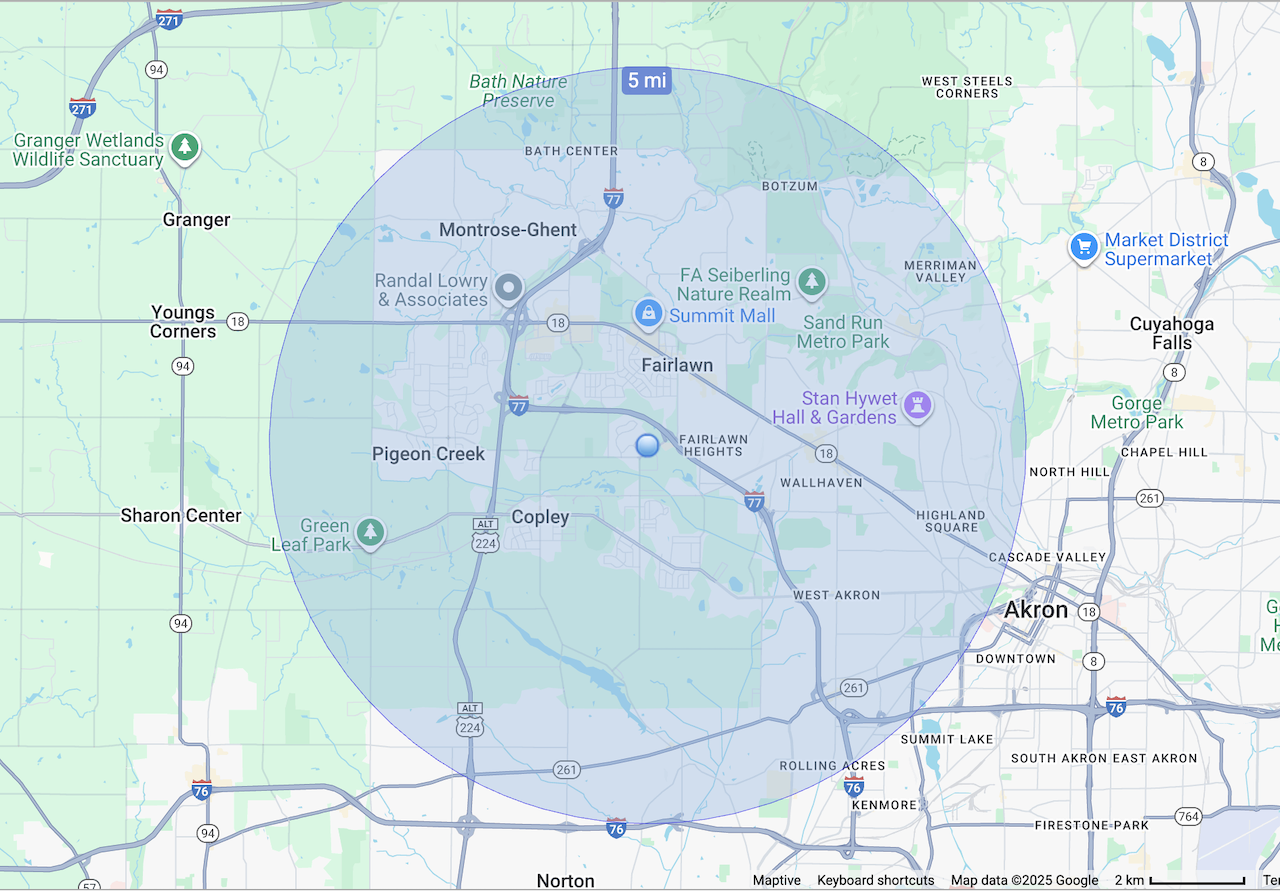 PeeWee's proudly serves West Akron and Fairlawn Ohio, within a 5 mile radius of the Ridgewood Rd & Miller Rd intersection in Fairlawn, 44333.